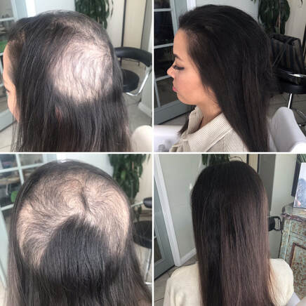 Our Trichotillomania clients do not feel comfortable wearing wigs and some of our clients are not able to wear hair extensions. We provide our Invisible Hair Barrier services as a viable option for masking the results of hair loss and prevents them from hair pulling. Because this service isn't their actual hair that is rooted from their scalp, it provides a barrier for the natural hair which cannot be pulled out of the scalp. Thus, the natural hair is safe, grows back healthier and gradually the strand grows stronger.